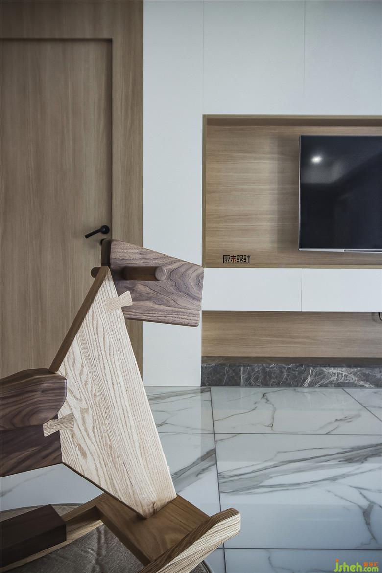 室內(nèi)設(shè)計師把衣柜改到了床背景的對面,增加了衣柜的面積同時,也擴大了床背景的整體寬度。