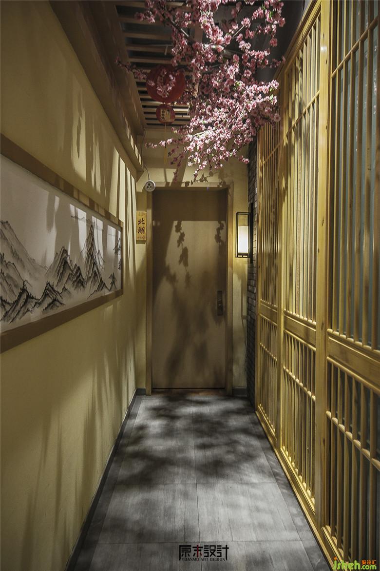 不獨支公住,曾經(jīng)陸羽居。室內(nèi)設(shè)計師將木欄桿把空間分割得剛剛好,搭配在走廊上的加上墨水畫,使人走在其中會覺得身在其境一樣。餐廳設(shè)計