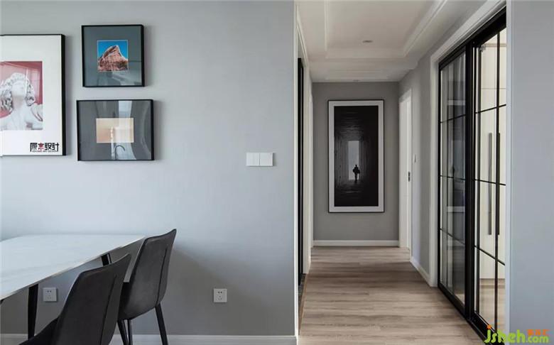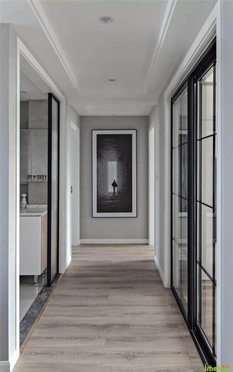 過道區(qū)域的干濕分離搭配極窄邊框屏風(fēng),其內(nèi)嵌長虹玻璃,有妥妥的高級感。左右兩邊的黑色邊框也有較好的呼應(yīng)效果。