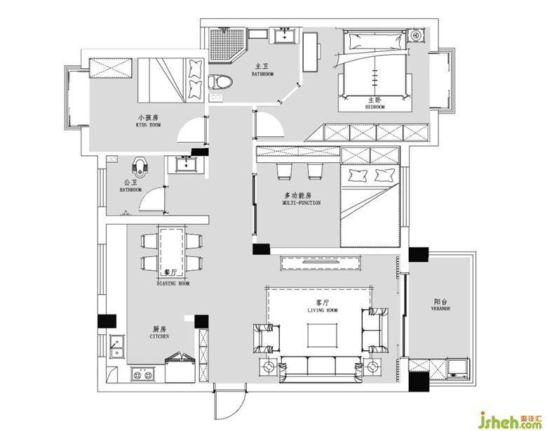 主衛(wèi)生間的爵士白墻磚,搭配地面的小白花磚和造型簡潔的洗手盆,整體干凈整潔,有些許年輕人喜愛的小資情調(diào)。