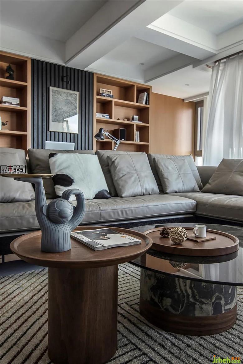 ▲ 一首歌會讓人著迷,一本書也能讓人豁然開朗。屋主喜愛閱讀,偶爾也在家辦公,客廳一側(cè)的開敞式書房,超大的書柜放著他??吹臅顽姁垩b飾品,既方便了平時的閱讀,也延展了空間的廣度,增強了空間的流動性。