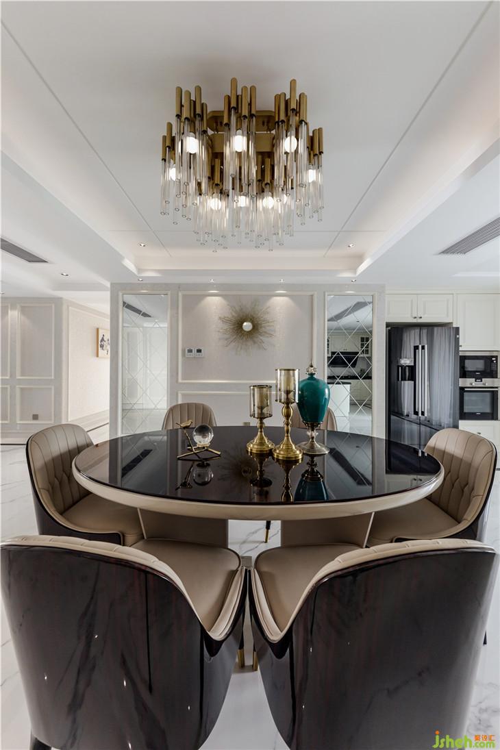 本案以白色為基調(diào),在裝飾上進(jìn)行了精雕細(xì)琢。在保留了傳統(tǒng)歐式風(fēng)格元素的基礎(chǔ)上,將整體設(shè)計(jì)實(shí)現(xiàn)了化繁為簡的處理。改歐式繁雜瑣碎的格調(diào),設(shè)計(jì)師用了大膽的手法,精簡材質(zhì),從質(zhì)感出發(fā),強(qiáng)調(diào)對比,打造由內(nèi)而外的優(yōu)雅奢華感。