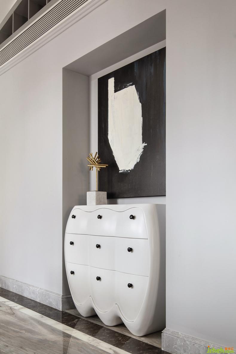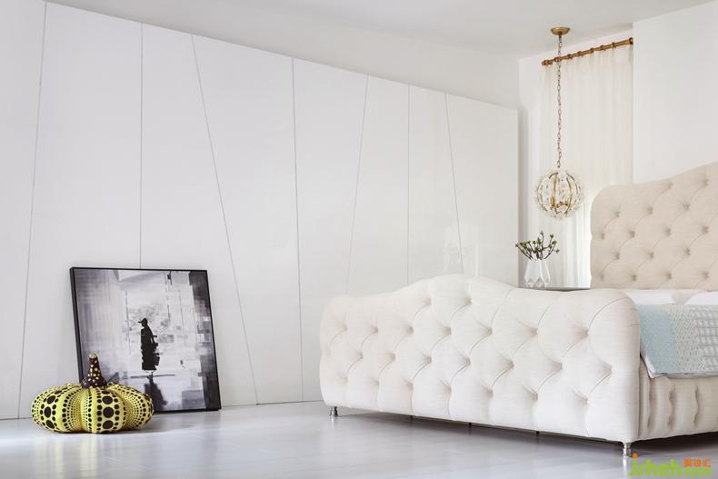 奶白色的柔軟與草間彌生的藝術(shù)品《南瓜》,讓臥室自然而然成為一幅純粹的藝術(shù)作品,干凈透亮的視覺效果,將極簡(jiǎn)主義美學(xué)發(fā)揮到完美。