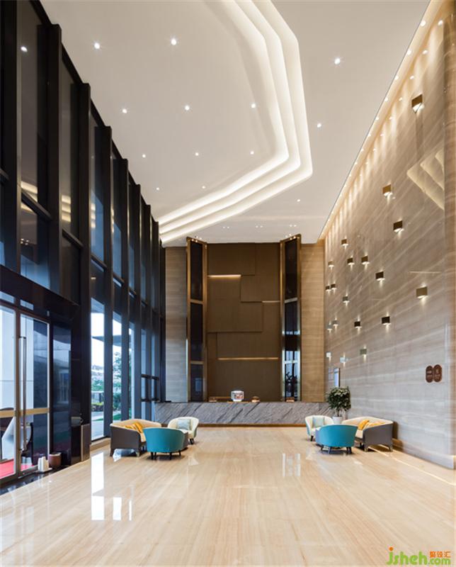 海口榮城鉑郡酒店,坐落于海南省??谑校貥?biāo)性建筑,外觀以海浪為主題。室內(nèi)設(shè)計(jì)以海浪與沙灘為主題,并以現(xiàn)代風(fēng)格將室內(nèi)室外建筑融為壹體。壹座富有海濱自然旖旎風(fēng)光的南方濱海城市,國(guó)家“壹帶壹路”戰(zhàn)略支點(diǎn)的壹座城,從而讓設(shè)計(jì)師憑借著海韻的魅力,用詩(shī)意的形式將它壹壹呈現(xiàn)出來(lái)。