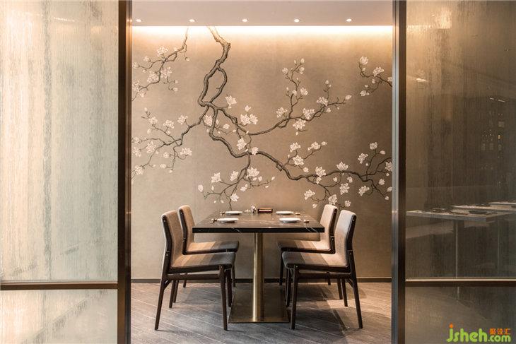餐廳定位高端客群,為了打造更高尚的用餐環(huán)境,而又不失私密性,特別安排了多個(gè)包間,空間分割上采用了定制的玻璃移門(mén),玻璃采用鐳射雕刻技術(shù),使玻璃呈現(xiàn)若穩(wěn)若現(xiàn)的半透明布紋效果,讓包房區(qū)與就餐開(kāi)放區(qū)的分界更為靈活。