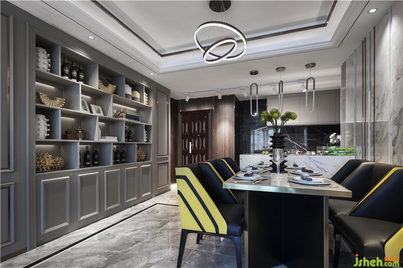 取其精髓,打造輕奢主義風(fēng)格,不限制于任何裝修元素與色彩。本案中運(yùn)用姜黃色、魅影黑、翠綠色、太妃糖色,古沙色、水晶玫瑰色,縱橫交錯(cuò)于爵士白大理石、干邑色金屬條各種觸感的材質(zhì)里。家具使用黑檀木皮、按樹瘤木皮多層處理,布藝黑灰色千鳥格紋,飾品物料烤瓷白、爵士白大理石、黑金沙大理石,經(jīng)過各種豐富材質(zhì)自行創(chuàng)新,讓空間氛圍更加多元化。摒棄了過多的約束,擺脫了沉悶的裝修格局,讓空間更加開放。