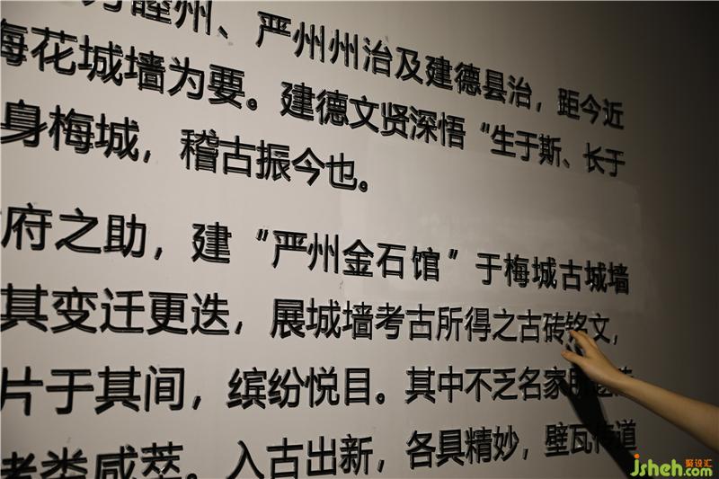 館內(nèi)分設(shè)序廳、古城墻歷史展示廳、金石展廳、互通體驗(yàn)區(qū)、拍賣(mài)廳及畫(huà)廊六大區(qū)塊。序廳主要以文圖與景觀搭配的形式,展現(xiàn)“天下梅花兩朵半,半朵梅花在嚴(yán)州”的展廳主題。古城墻歷史展示廳展示梅城城墻遺址的考古研究成果,通過(guò)古磚古瓦古石講述梅城1800年歷史文化。