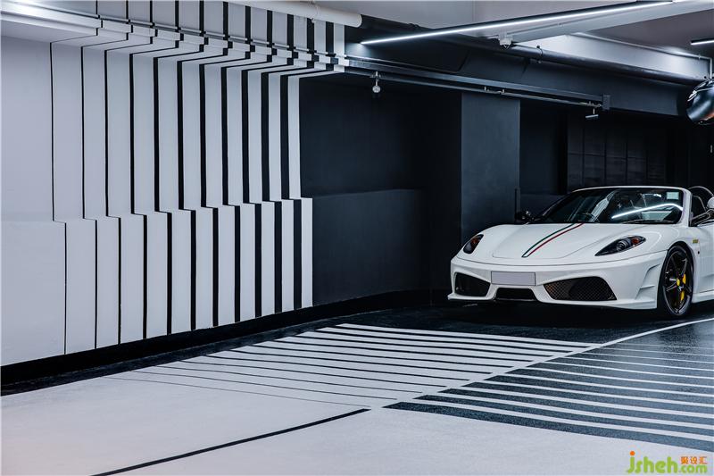 改造前:墻面是車庫最常規(guī)的乳膠漆白墻,不耐臟且過于普通,當(dāng)那些價值不菲的藝術(shù)品在此停泊時,無論多出色的外觀與性能都只能流連在著平庸的場景中。