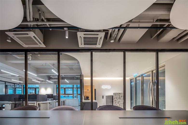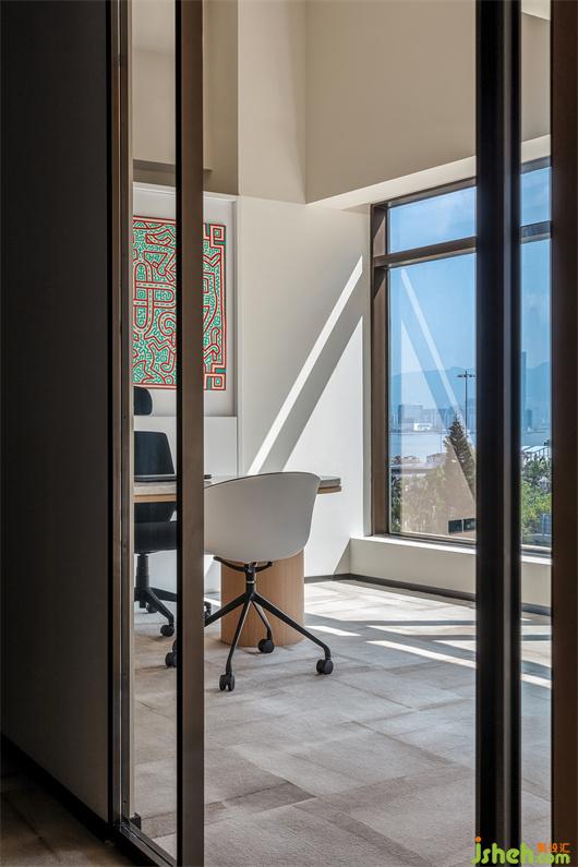 最后,在私密辦公區(qū)中,設(shè)計師用大面積玻璃窗將自然光源引入室內(nèi),透明的玻璃門,讓整個區(qū)域視野更為開闊。