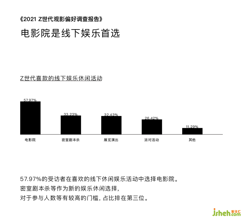但事實(shí)上,線上永遠(yuǎn)無(wú)法取代電影院的觀影效果與氛圍。1905電影網(wǎng)發(fā)布的《2021 Z世代觀影偏好調(diào)查報(bào)告》顯示,電影院仍然是年輕人的線下娛樂(lè)首選。