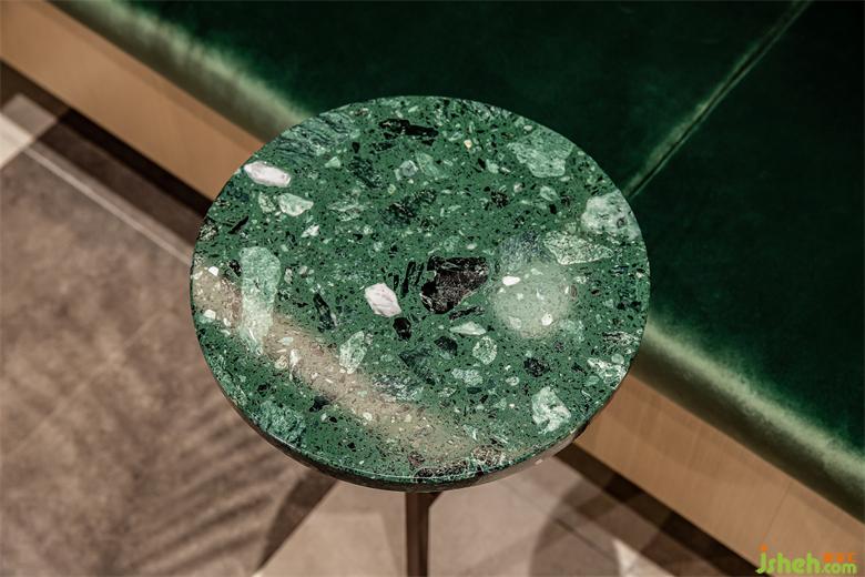 在公共社交區(qū)域,水磨石+人造皮革+木材的材料構(gòu)成也有其自身寓意:水磨石與人造皮革代表可持續(xù)的生產(chǎn)方式,木則代表了自然和日常,日常具有實實在在的情感記憶以及無聲的力量,電影院設(shè)計師以“可持續(xù)的日常”構(gòu)成這個多功能的聚集空間。