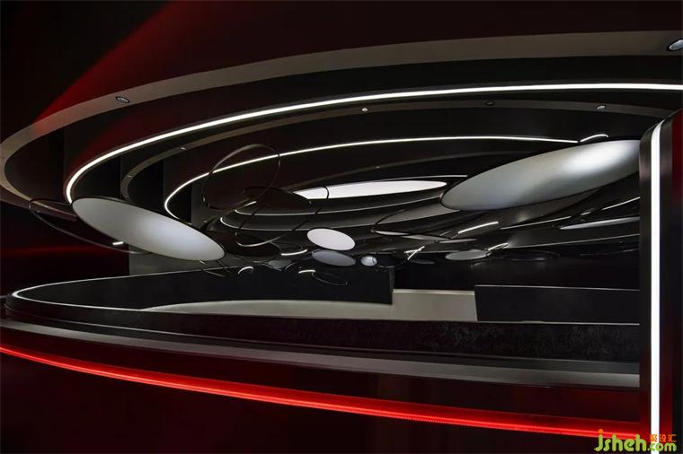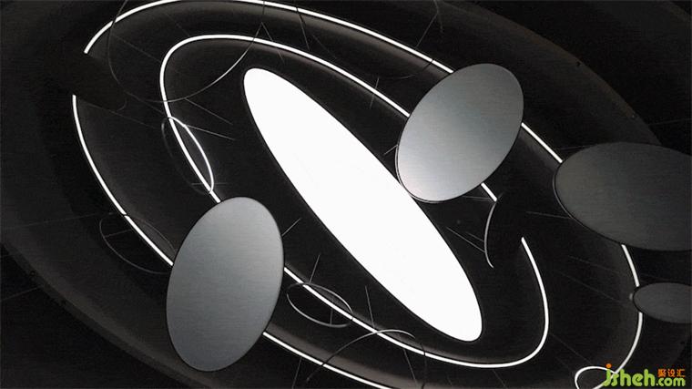 在步入二樓后,電影院設計這段圍繞天體運動的“環(huán)形公路”則試圖在回應這個哲學問題,我們該去向何處?