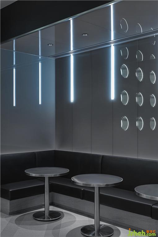 金屬洞洞板中滲出的光影與釣魚也成為空間的氛圍補(bǔ)充。