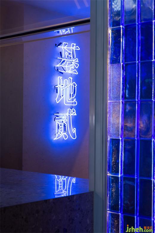 在空間邏輯上,OFT設(shè)計(jì)用“自下而上”、“循序漸進(jìn)”的酒吧設(shè)計(jì)手法連接兩層空間;在視覺上,藍(lán)白兩種冷色則以一種最直接的方式,將賽博朋克風(fēng)格中的冷峻與科幻發(fā)揮到極致。