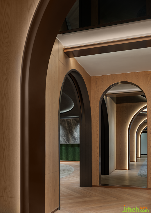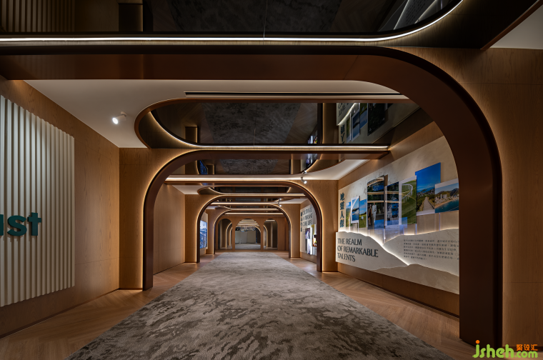 當(dāng)然,沒有什么比一個(gè)具有探索感的長(zhǎng)廊更適合展示品牌故事,于是,主走廊成為本次購(gòu)房之旅的起點(diǎn)。