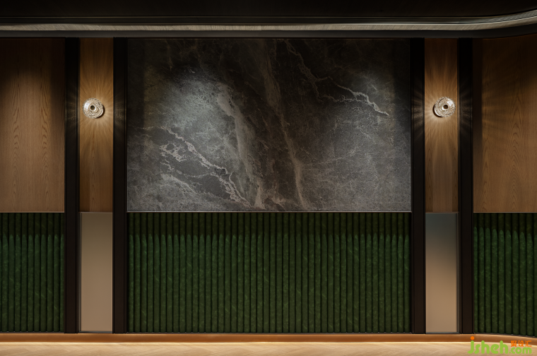 售樓中心設(shè)計(jì)為強(qiáng)化品牌印象,OFT用充滿生機(jī)的苔鮮綠回應(yīng)英皇品牌色,除此之外,設(shè)計(jì)師還希望通過幾種自然色系,傳遞一種低調(diào)沉穩(wěn),且有機(jī)生長(zhǎng)的生活態(tài)度與老錢美學(xué)。