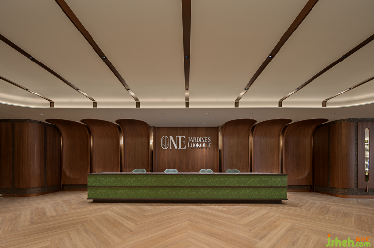 除了功能性,在設計細節(jié)上,同樣經(jīng)得起推敲,空間中不同材料相互映照,隱喻中西文化在此交匯,生長出新的文化精神與內(nèi)核。而突破兩個平面規(guī)則的墻面造型,則預示著英皇地產(chǎn)不斷尋求突破與創(chuàng)新的品牌發(fā)展軌跡。
