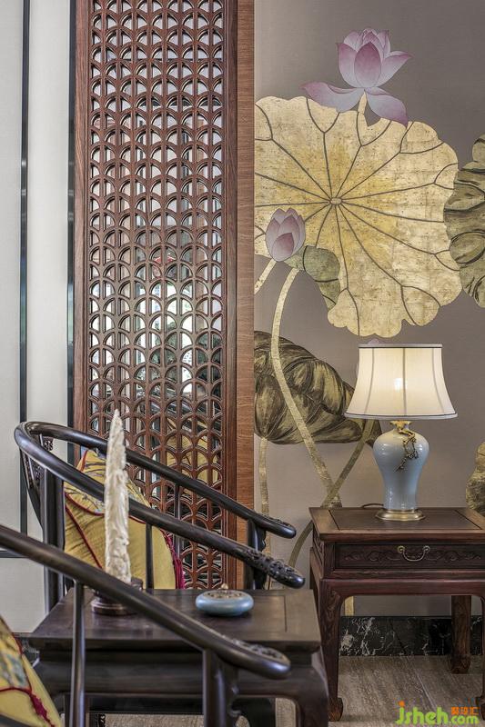 荷花墻布,極具富貴之態(tài)