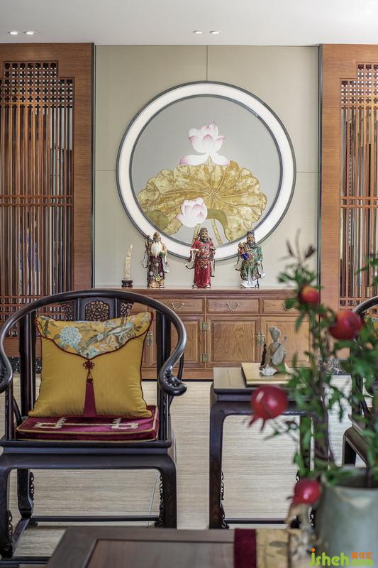 項目運用了大量的荷花元素,墻上的巨幅