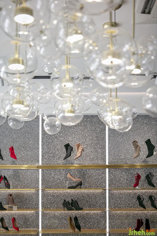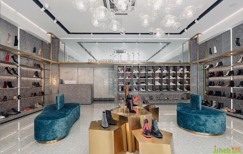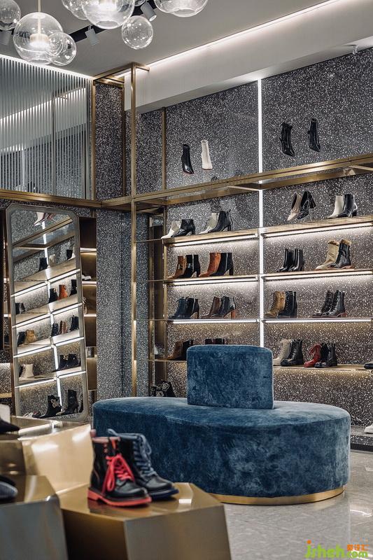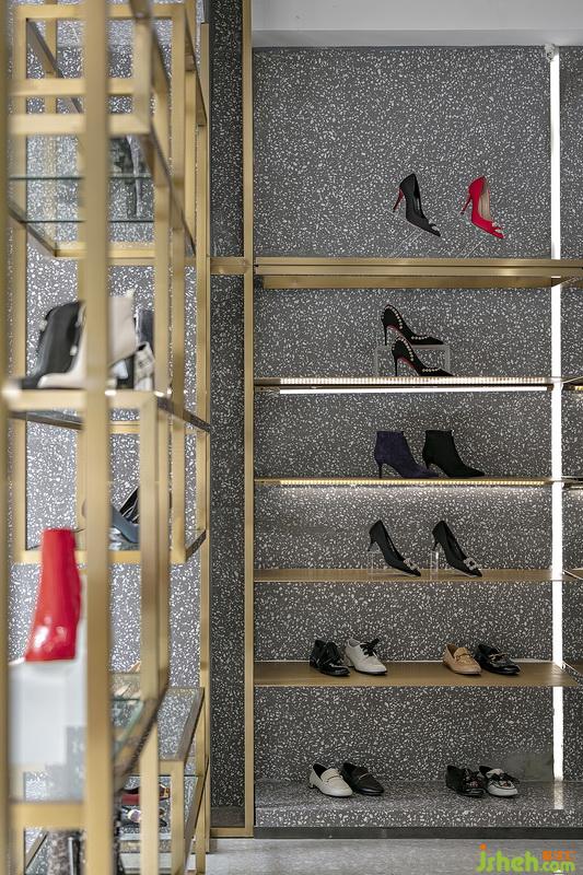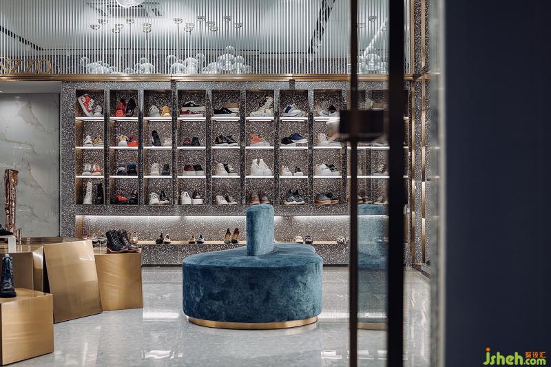 EUSANZZO店升級為采用高級灰色系統(tǒng)和鈦金色金屬材質(zhì)的點綴貫穿整個空間,使80平方米的空間更具國際時尚感。