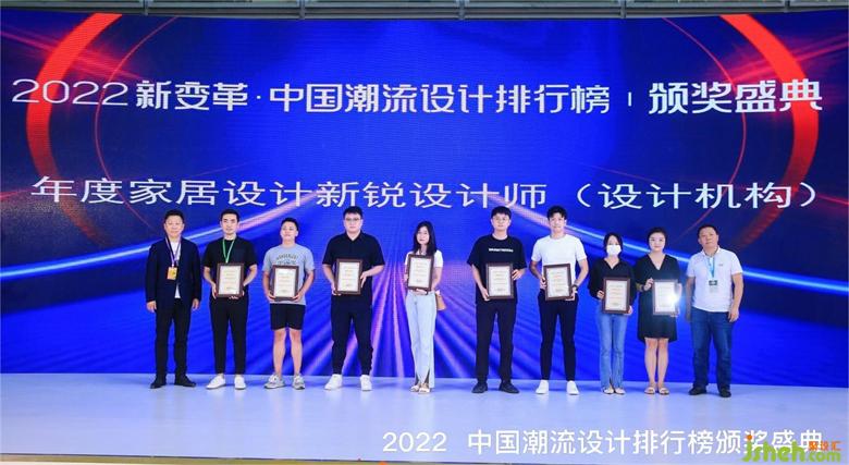 接下來就是激動人心的高光時刻。首先頒發(fā)的是2022中國潮流設(shè)計排行榜“年度領(lǐng)軍人物”和“年度家居設(shè)計新銳設(shè)計師(設(shè)計機(jī)構(gòu))”兩個獎項,室內(nèi)設(shè)計大賽評委與特邀嘉賓相繼上臺為獲獎設(shè)計師頒獎,并且合影留念。