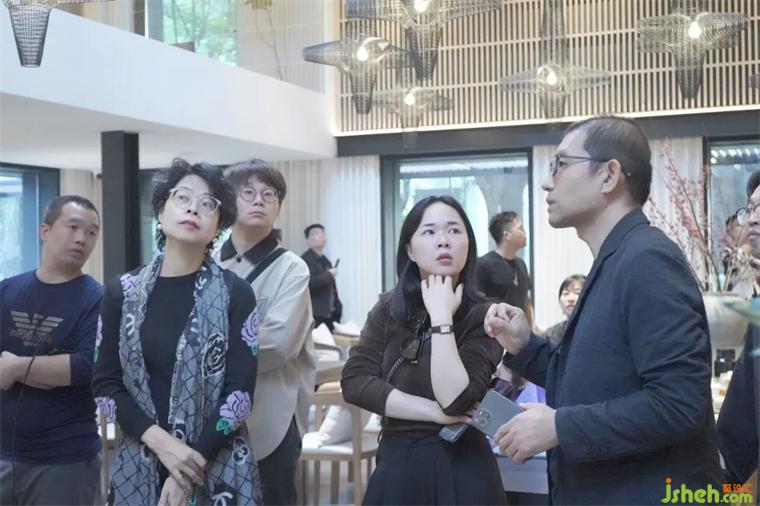 李武杰老師為大家介紹:羅蘭湖餐廳外部墻體采用木質裝飾,營造自然氛圍。入口處設置隔斷走廊,人人經由探尋方能步入,一步一景,心境和情緒跟隨蜿蜒路徑不斷變化。