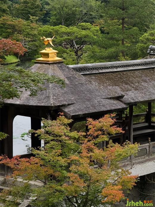 全園的祈壽主題非常明顯,有壽月觀、神仙島(一池三島)、千歲橋等主要景點,透過這些景名,那位當(dāng)年已63歲還在造園的后水尾上皇的晚年心情也可略見一斑。在這里,他一邊凝望著月亮,一邊作詩,就這樣度過著他的歲月。從這個有著水流和叮咚作響的瀑布的下庭園中,你可以沿著一條兩邊樹木林立的小徑來到中間的一個庭園。這兒的小亭中有一幅著名的魚畫,那魚逼真得就像有一張畫出的網(wǎng)在罩住它們,不讓它們游走一樣。最后你到達云亭,在此能觀賞到令人心顫的美麗全景:上庭園散落著湖、橋、瀑布、小島和精巧的亭子,這些形成了前園;后面是京都城,背靠重重群山。