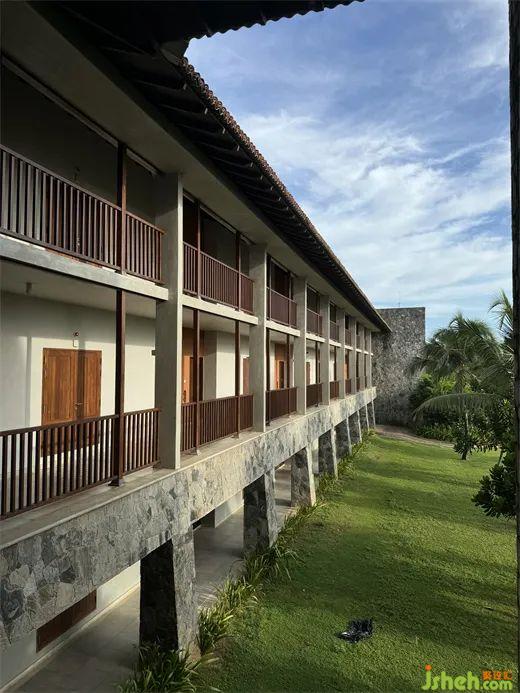 該酒店位于班托塔河于印度洋的入???,一塊轉(zhuǎn)角基地之上,一面面朝印度洋,一面面朝班托塔河。