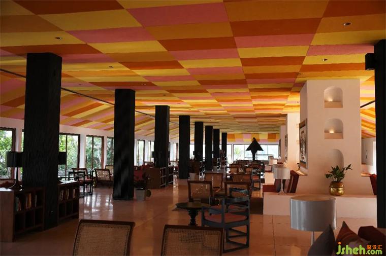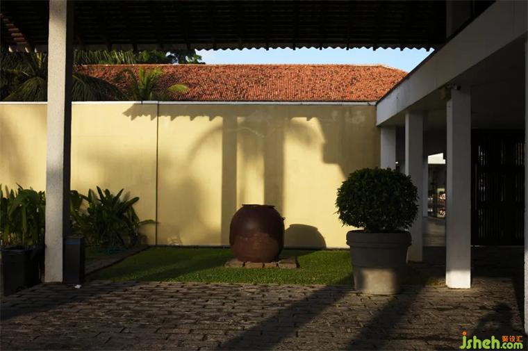 2.低成本建材運(yùn)用,所有巴瓦的作品采用的材料都極其普通、便宜,室內(nèi)幾乎沒有吊頂,墻面四白落地,地面是陶土磚、水泥地面或者木地板,沒有踢腳線。照明基本采用自然光和間接照明。裝修上極少采用現(xiàn)代材料,空間呈現(xiàn)出簡(jiǎn)樸、自然的松弛感。
