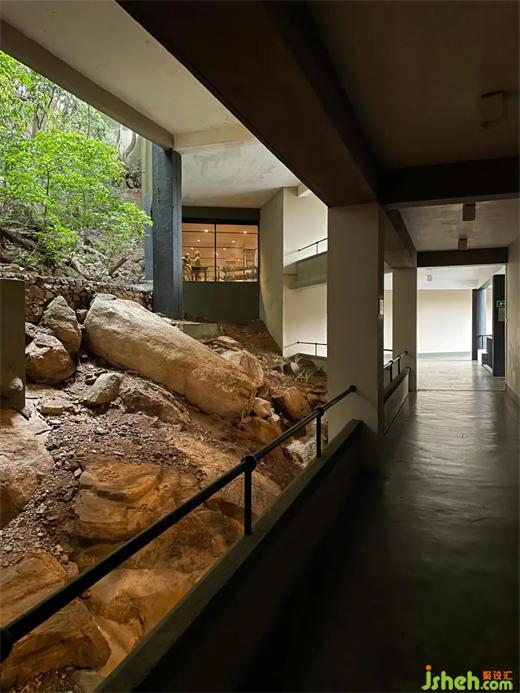 巴瓦給酒店的概念基于人造“洞穴”結(jié)構(gòu)的理念,這種洞穴的形態(tài)類似當(dāng)?shù)氐奶烊粠r層。酒店的建材來自本土,墻壁似乎是從土地里直接“長出”,屋頂花園則將自然景觀延伸到了建筑之上。酒店的設(shè)計中,連接不同區(qū)域的坡道、橋梁與通道自然地展開,引導(dǎo)著游客們?nèi)グl(fā)現(xiàn)探索,與他們周圍的環(huán)境建立聯(lián)系。