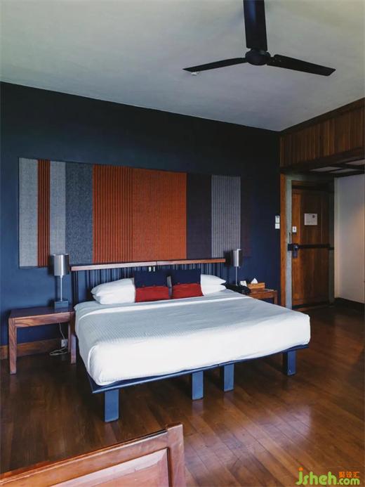 除了環(huán)境方面的考慮,巴瓦還注重于將當(dāng)?shù)匚幕c酒店沒汁糅合到一起,當(dāng)?shù)厮鶓鮇aduru木材和手工赤陶瓷磚得到了廣泛使用。工程還雇用了當(dāng)?shù)厮囆g(shù)家進行復(fù)雜的壁畫創(chuàng)作,增加了酒店的文化底蘊。