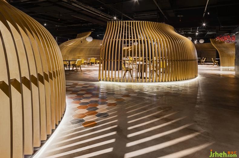 作品簡介:北緯37°海鮮位于鎮(zhèn)江市潤州區(qū)黃鶴山路8號(hào),是一座鬧中取靜的羨饞之所。設(shè)計(jì)師的出發(fā)點(diǎn)是希望從風(fēng)格、材質(zhì)、色調(diào)以及設(shè)計(jì)手法上與常見的“海鮮”餐廳做出差異化,從而呈現(xiàn)一間前所未有的氣貌簡古、溫潤感性的用餐空間。