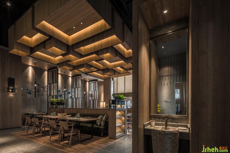 作品簡介:從無形之中,于情景之內(nèi),傳遞出東方的氣質(zhì)和風(fēng)韻,注入時下人們生活的元素,餐廳設(shè)計用當(dāng)代空間表情去重新演繹傳統(tǒng)素食的文化理解與內(nèi)涵。取其形,表其意,以抽象的山水形象詮釋現(xiàn)代東方意境。