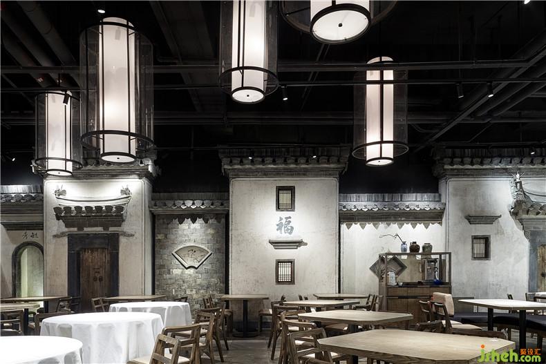 作品簡介:虛實是中式設(shè)計重視的又一個觀念,典型的中式空間講究“隔斷”,而這種隔斷,目的并不在于要把空間切斷,而是一個過渡、一個提醒、一個指示,常?!案舳粩唷薄TO(shè)計師在黟縣民間收集了老建筑拆除余留的格柵門板,清理修復(fù)但保持原有年代的色澤。用方通加以固定,形成屏風(fēng)式隔斷,既完成了就餐空間的私密需求又隔而不斷,使整體空間完整,通透還有很強的裝飾。