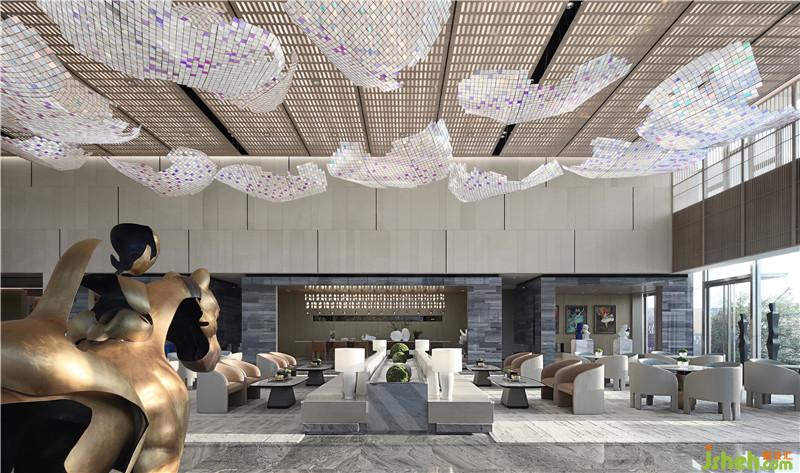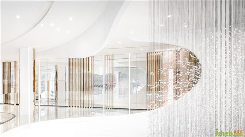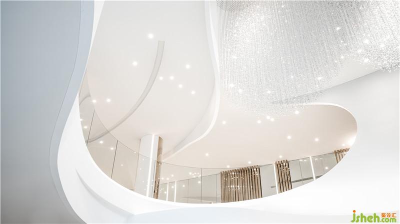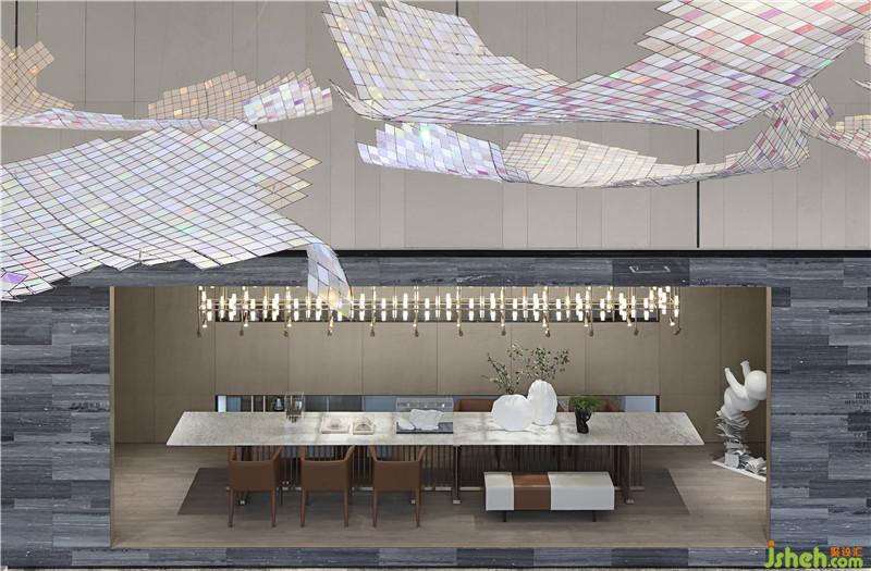 作品簡(jiǎn)介:城市星光璀璨 月與星辰丨掬水流光的后現(xiàn)代寓言 以后現(xiàn)代美學(xué)敘事,通過(guò)日月星辰的光輝聚合和建筑空間的流暢演繹,劉榮祿勾勒出時(shí)空的韻腳,折射新生活哲學(xué)的未來(lái)之境。 大廳借由自然光線和建筑線條的鋪層,提煉空間結(jié)構(gòu),與金屬材質(zhì)造型的豐富層次,幻化出光的場(chǎng)域。讓人置身其中,一步一景色,俯拾之間即見(jiàn)日月星辰。利用光影照度,把控空間的節(jié)奏和溫度。靈動(dòng)的線條仿佛漂浮的流云,在鋼筋水泥之外呈現(xiàn)翩躚云上的意境。