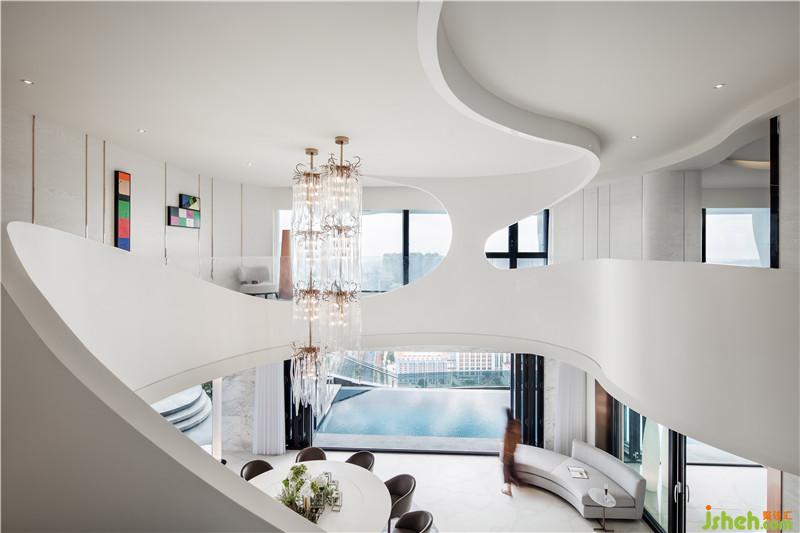 作品簡介:環(huán)抱于都市山水的高層私人會所,以純粹自然的簡約氣質(zhì),演繹摩登經(jīng)典的表達(dá)方式。設(shè)計以精妙絕倫的流線天然輪廓展開,拉近天空和云海的距離,彰顯建筑與自然的融合新生,詮釋尊崇會所的價值坐標(biāo)。